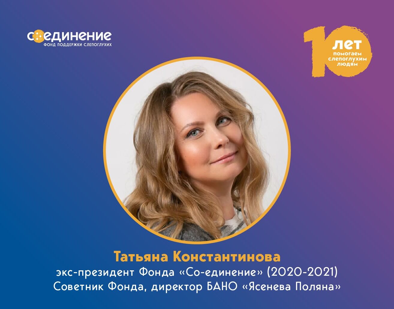 В 2024 году Фонду «Со-единение» исполняется 10 лет. В преддверии юбилея мы взяли ряд интервью с людьми, без которых непредставима наша организация. Сегодняшняя наша героиня — Татьяна Константинова, человек, который вместе с нами все эти 10 лет.